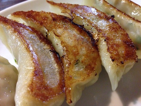 ノスタルジックなお店に入り、焼餃子を注文して15分くらいで到着。油をしっかり使って焼いている感じで普通の大きさで皮もふつう。食べると以外にモチっとパリッとしてる。餡は野菜多めで食べやすく、醤油5:酢:5でちょうどいい。6個400円@67円と少し高いな。★★2.1
